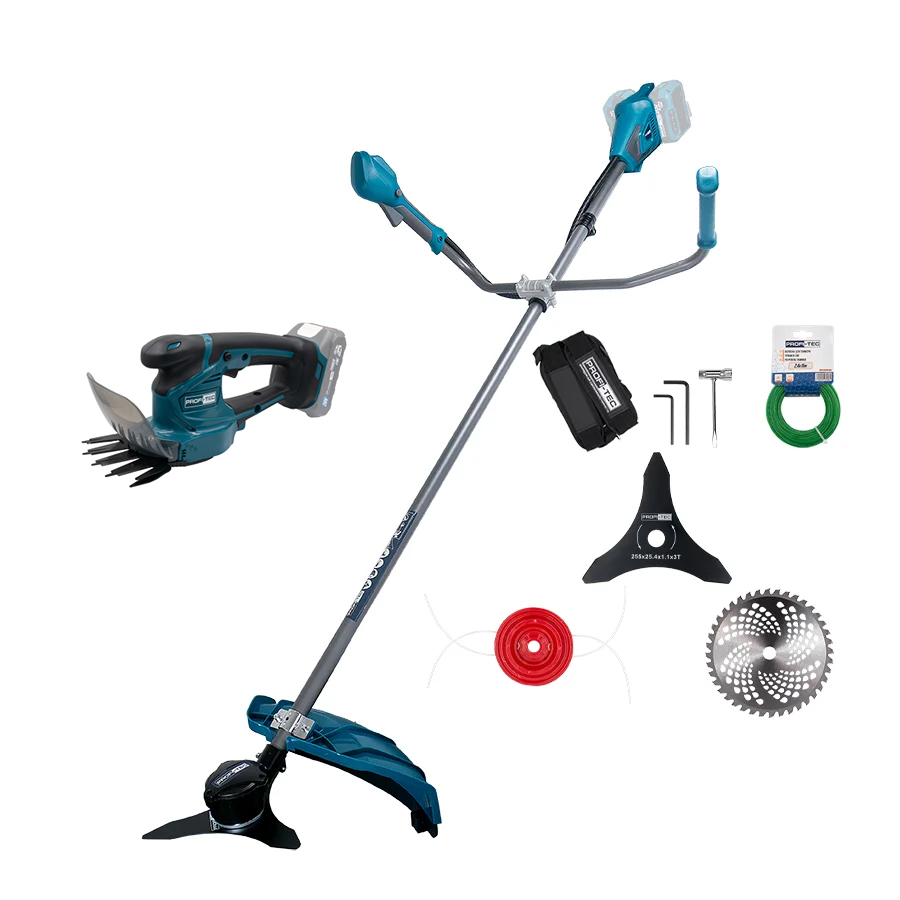 Акційний комплект PROFI-TEC: Акумуляторна коса PGT4540 (40 В (2×20 В + акумуляторні ножиці-кущорізи PHT1110 + батарея 2×PT2040VX, ЗП BC20V, коробка)