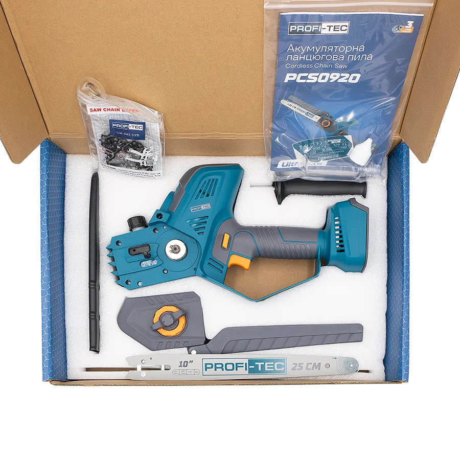 - Акумуляторна ланцюгова пила PROFI-TEC PCS0920;