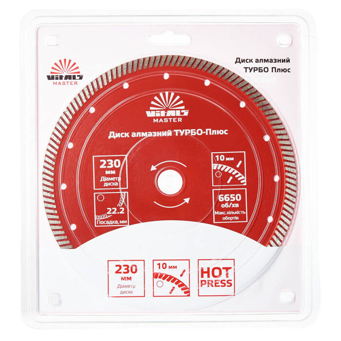 - Диск алмазний Vitals Master ТУРБО-Плюс 230×22,2×10 мм;