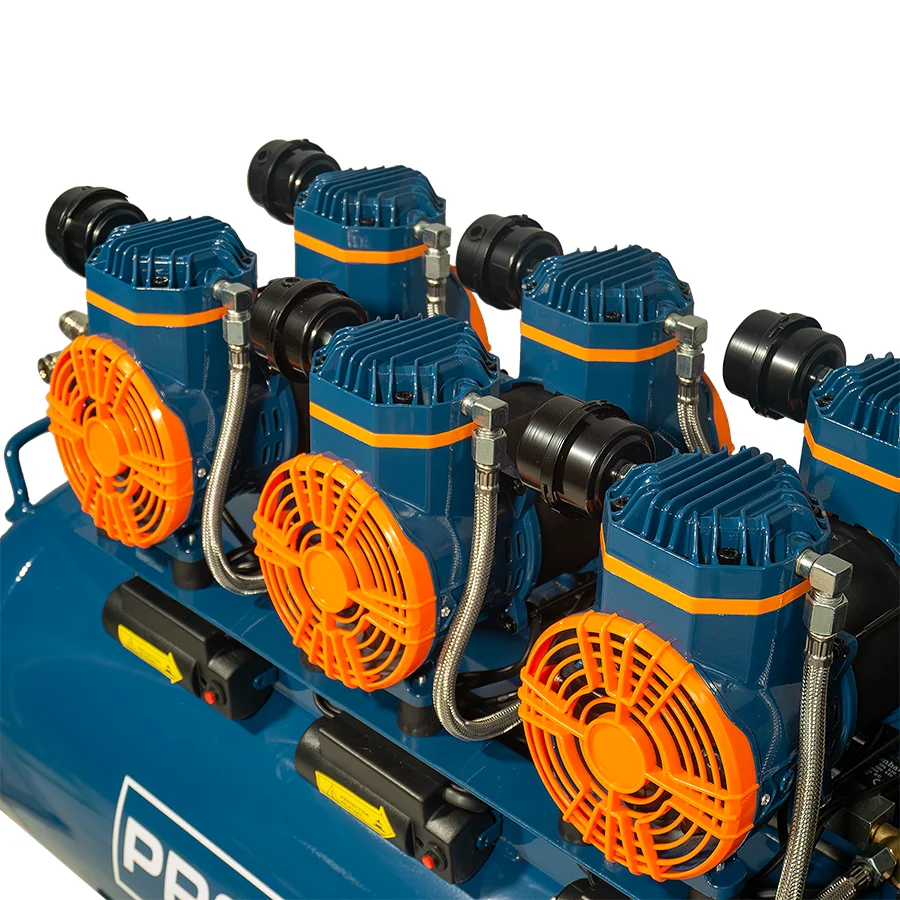 Компрессор PROFI-TEC OFC-100.6 — безмасляный поршневой агрегат с прямым приводом, предназначенный для интенсивного использования с пневматическим инструментом, оборудованием и системами, где требуется высокая производительность и стабильная подача сжатого воздуха. Благодаря безмасляной конструкции компрессор обеспечивает чистый воздух без примесей смазки, что особенно важно для покрасочных, монтажных и технических работ.