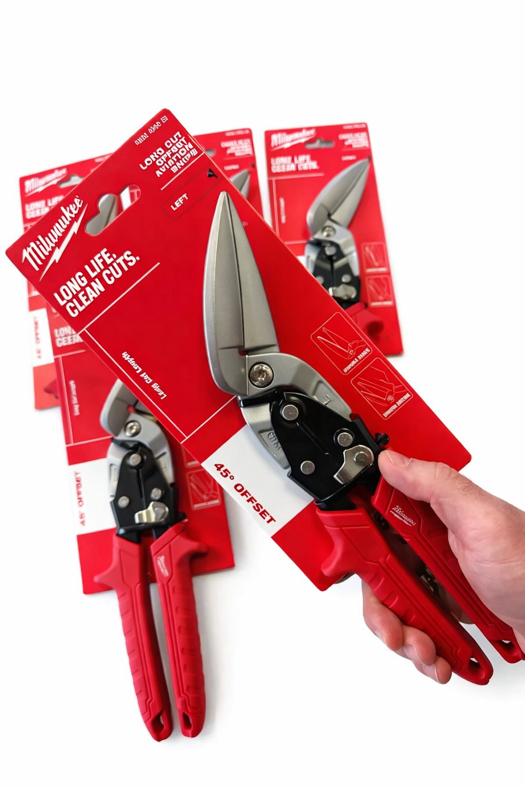 Ножницы по металлу удлинённые офсетные (45°) Milwaukee (левый рез) — профессиональный инструмент для точной, чистой и комфортной резки различных материалов: нержавеющей и углеродистой стали, цветных металлов, пластика, резины, кожи, картона, проволоки. Удлинённая конструкция обеспечивает лучший доступ и контроль при работе с листовыми материалами. Идеально подходят для использования на производстве, в мастерской и в быту.