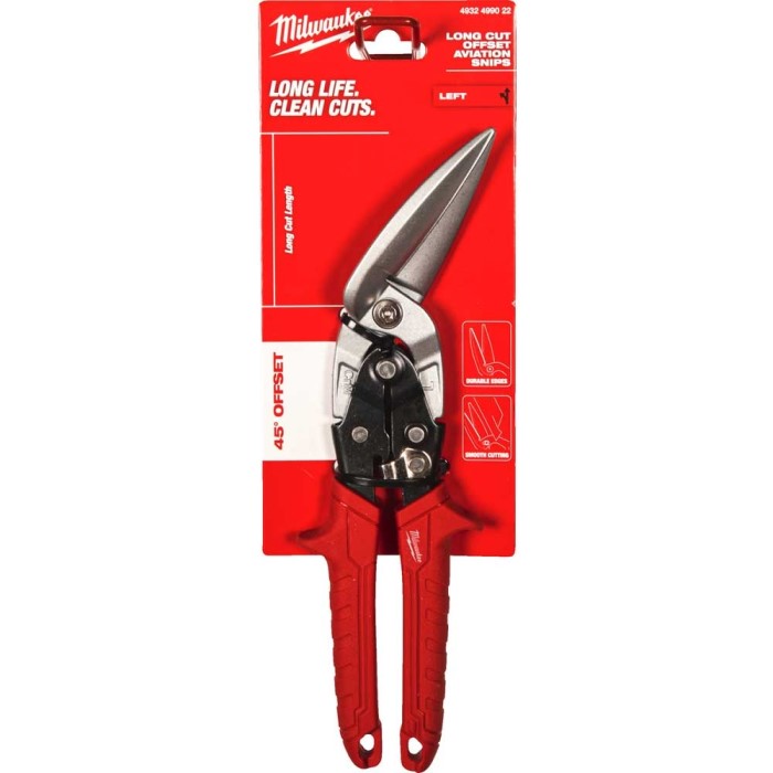 Особенности ножниц по металлу удлинённых офсетных (45°) Milwaukee (4932499022):