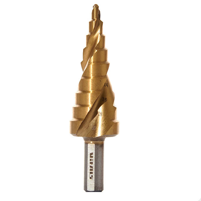 - Сверло ступенчатое спиральное Vitals Master 4–20 мм;